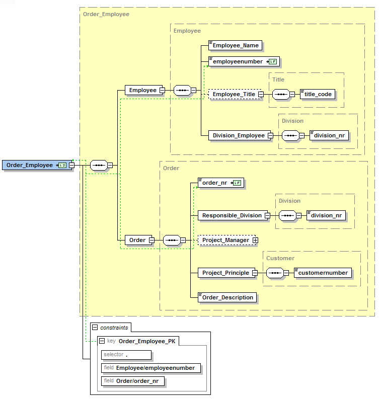 | Additional Information | <xs:element name="Opdrachtmedewerker" type="Opdrachtmedewerker"> <xs:key name="Opdrachtmedewerker_PK"> <xs:selector xpath="."/> <xs:field xpath="Werknemer"/> <xs:field xpath="Opdracht"/> </xs:key> </xs:element> should be <xs:element name="Opdrachtmedewerker" type="Opdrachtmedewerker"> <xs:key name="Opdrachtmedewerker_PK"> <xs:selector xpath="."/> <xs:field xpath="Werknemer/werknemernummer"/> <xs:field xpath="Opdracht/opdrachtnummer"/> </xs:key> </xs:element> | ||||