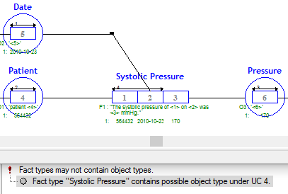 | Description | Facts which are properly created according to the N-1 rule, may still contain invalid modeling. Every FactType with more than 2 roles, and a single UC (non overlapping with others) over more than 1 role, is candidate to be nominalized. Therefor the roles under the UC should be split into a seperate ObjectType. | ||||