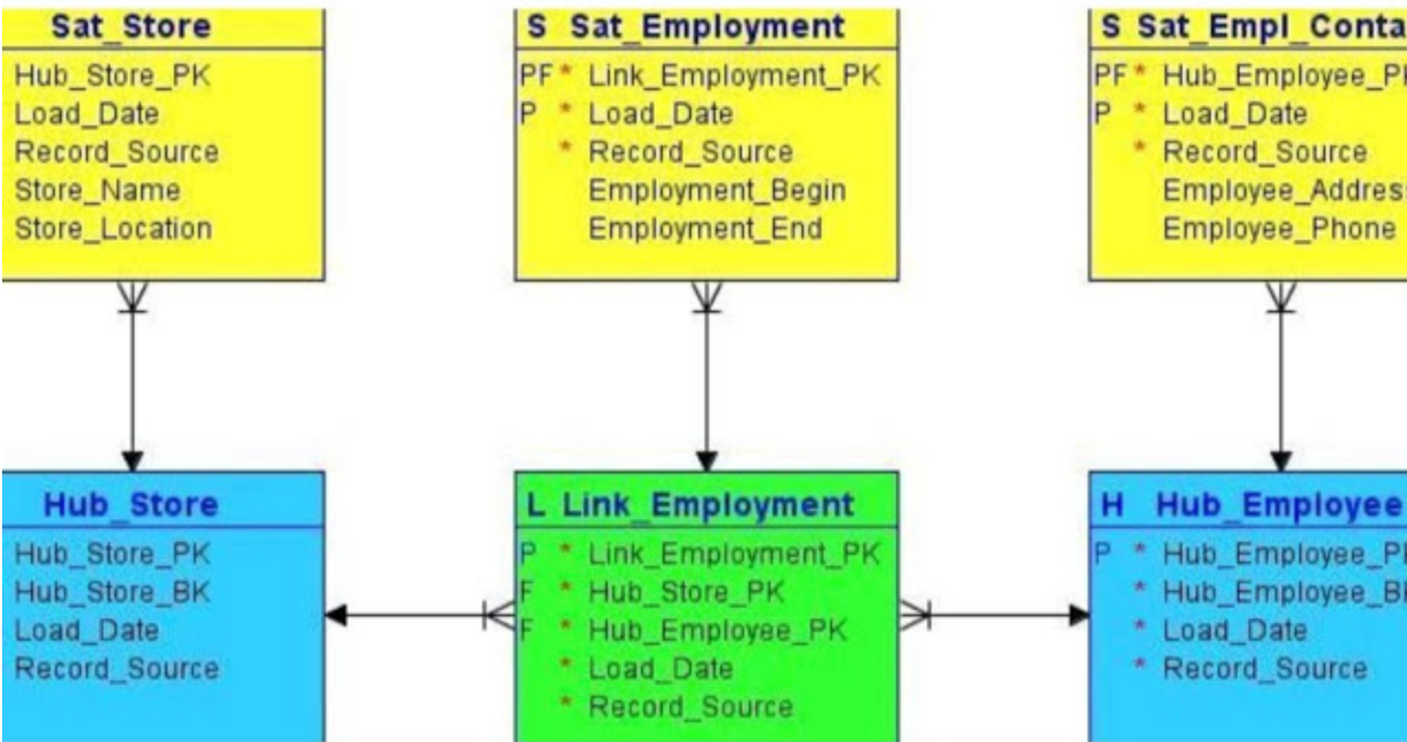 | A snapshot of a partial data vault model showing the required storage functions. | |