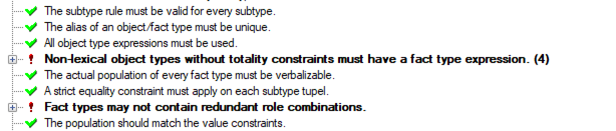 Allowing rules to collapse will show the amount of hits in brackets, and the line is presented in bold font to highlight hidden violations. |