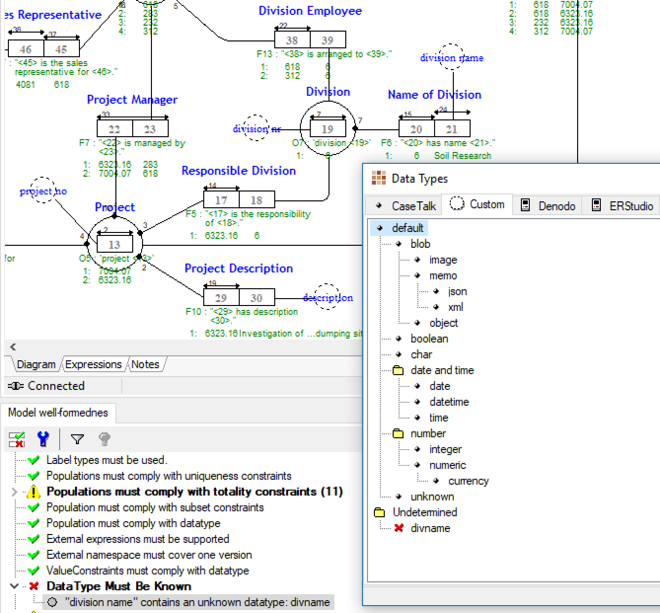 | Description | CaseTalk supports a few datatypes natively. Modelers may specify their own datatype names. Implementation generators may have an entirely separate list of datatypes. How these are connected and maintained is not clear. It would be convenient to have some browsing window to see how they relate and potentially are transformed. | ||||