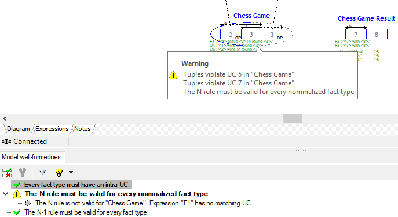 | Description | The N-Rule matches role combinations with the expressions and UC's. If a 3-role OT has two OTE's for 2 our of 3 roles, the violation is not triggered. However once a FTE is added which involves all 3 roles, the N-Rule shouldn't have to be violated due to the FTE. | ||||