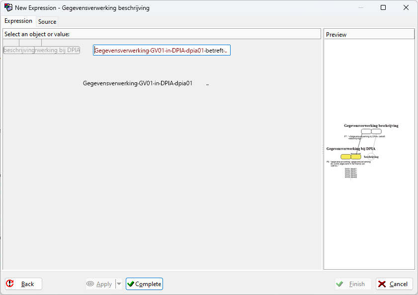 | Description | Occasionally, during a normal flow of classifying an expression, the expression window's options to go forward will be gray, with only the 'Back' option available to select. When pressing 'Back', and then 'Complete' again, the normal flow can be continued. In this specific case, some strange text is shown in the top-left corner of the expression screen (see image 2). This seems to be a separate issue, which started in the latest CaseTalk version. | ||||