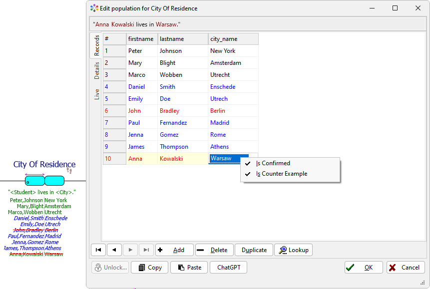 | Description | Being able to mark the tuples as confirmed, or as counterexample is helpful for expressions, but should also be reflected in the diagrams. | ||||