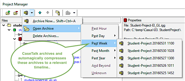 | Description | The project manager archive popup menu contains a list of archives. This could be ordered according to the newly specified archive scheme. Having a clear overview of archives for the last hour, day, week, month, year etc, would make it more useful. | ||||